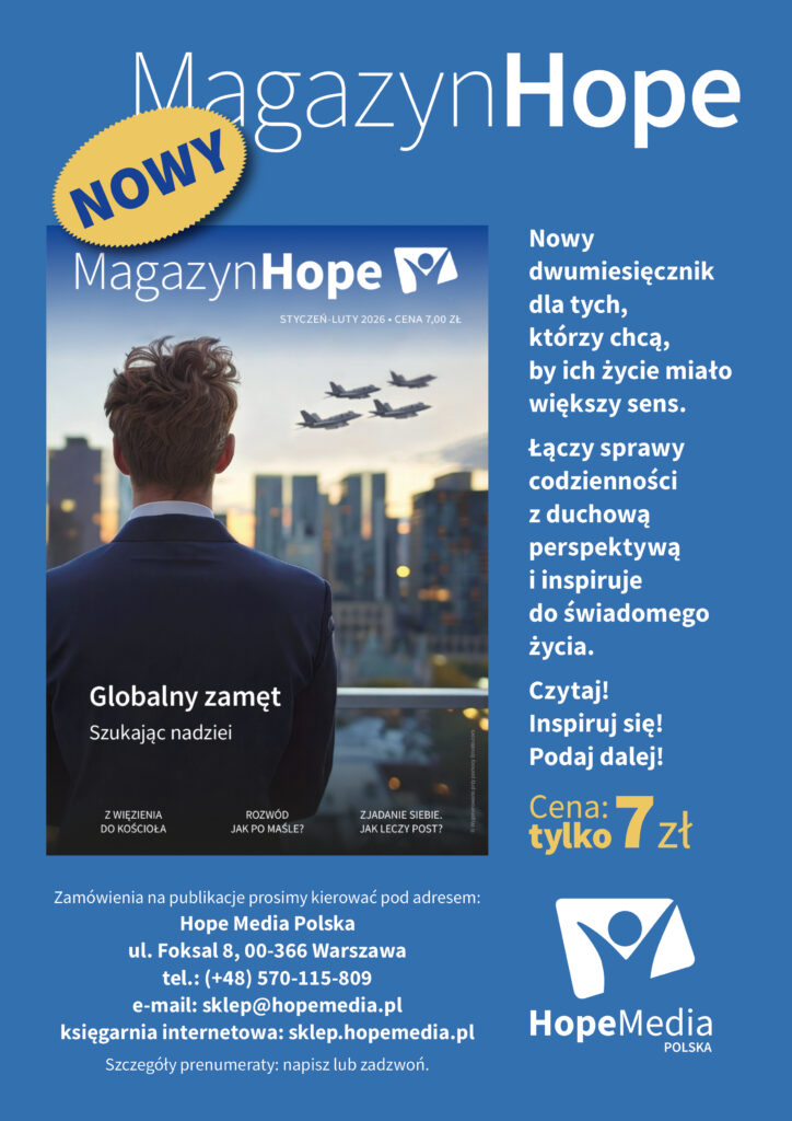 z wielką radością przekazujemy informację o nowym dwumiesięczniku „Magazyn Hope”, przygotowanym przez Hope Media Polska. Jest to czasopismo skierowane do osób, które pragną, aby ich życie miało głębszy sens, szukają nadziei oraz chcą patrzeć na codzienność z duchowej perspektywy.