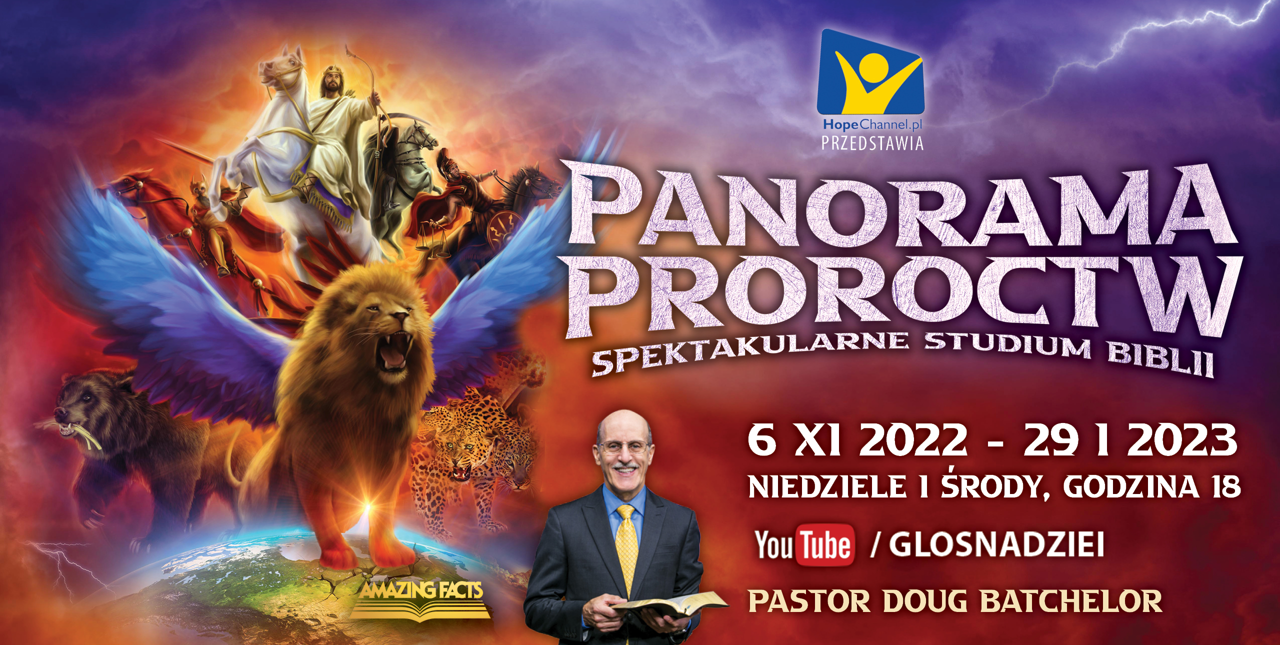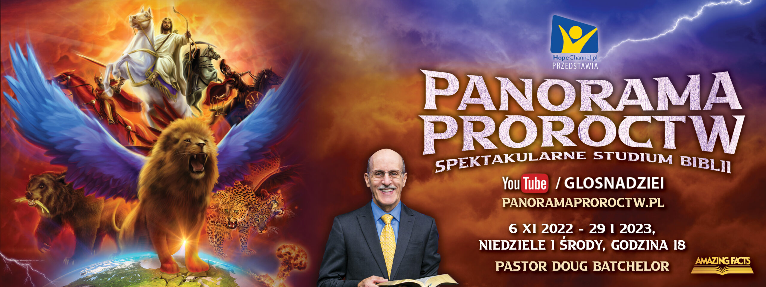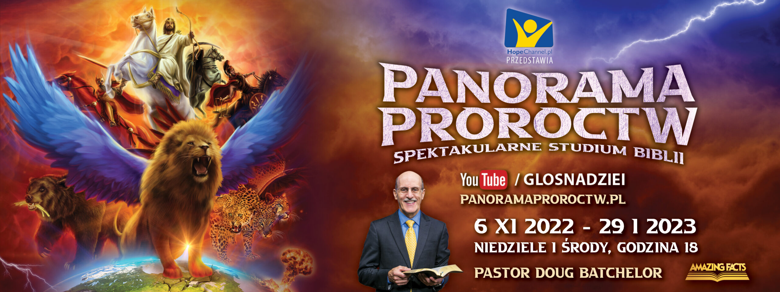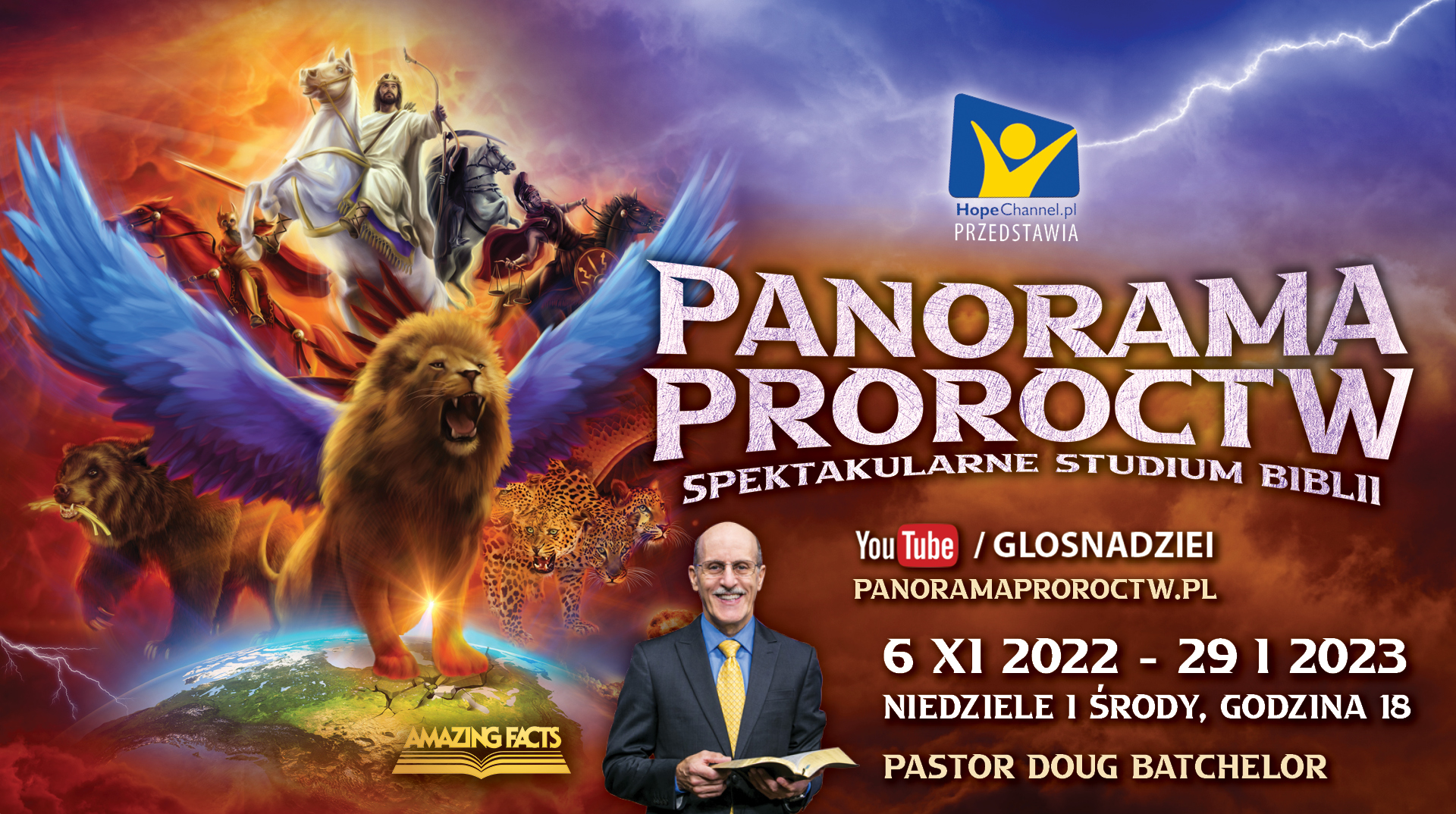 Zapraszamy Was do udziału w nowej serii wykładów biblijnych pt. PANORAMA PROROCTW. Głównym mówcą jest pastor DOUG BATCHELOR znany z wielu programów realizowanych przez Amazing Facts, adwentystyczną stację telewizyjną w Stanach Zjednoczonych.