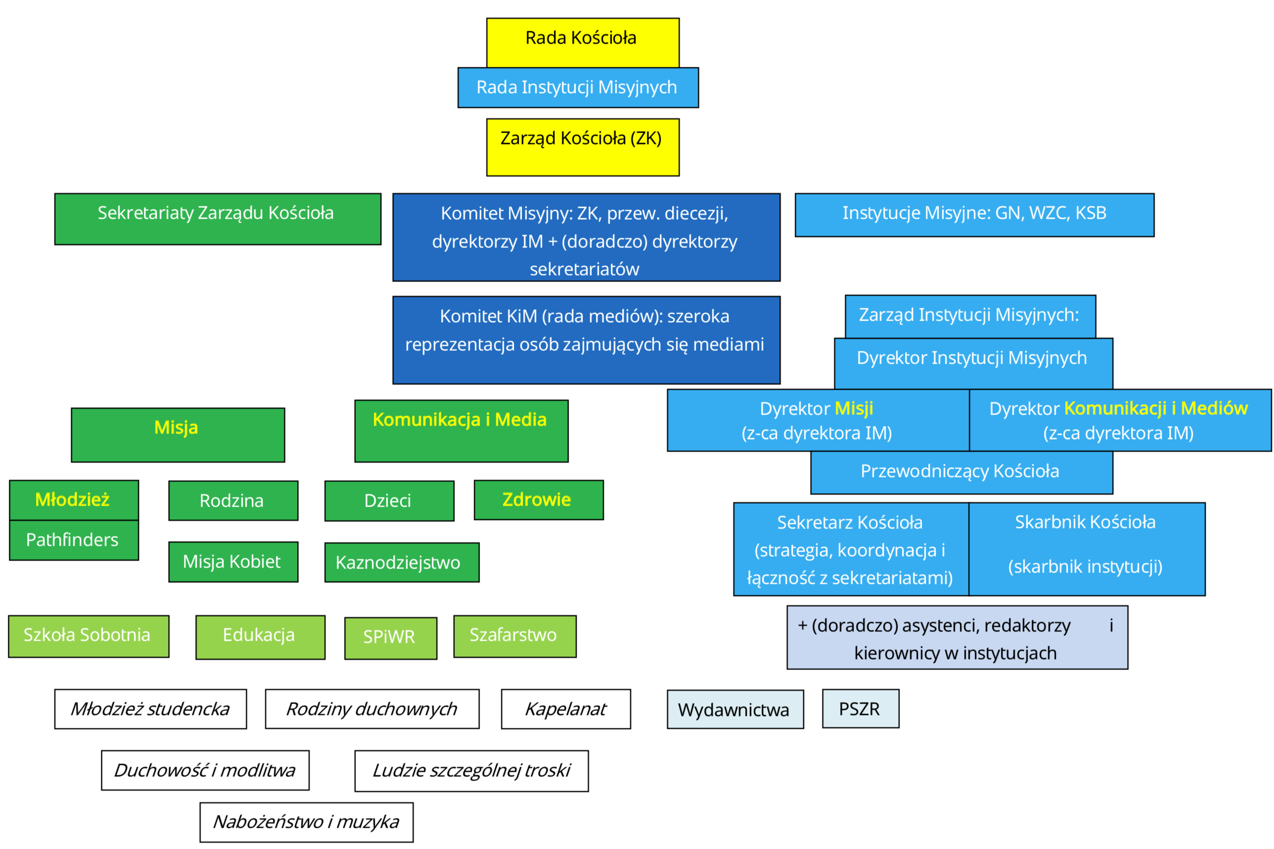 - Powyższy schemat organizacyjny jest skutkiem reform rozpoczętych w poprzedniej kadencji oraz przyjętej na XXII Zjeździe Kościoła Strategii na lata 2018-2022.