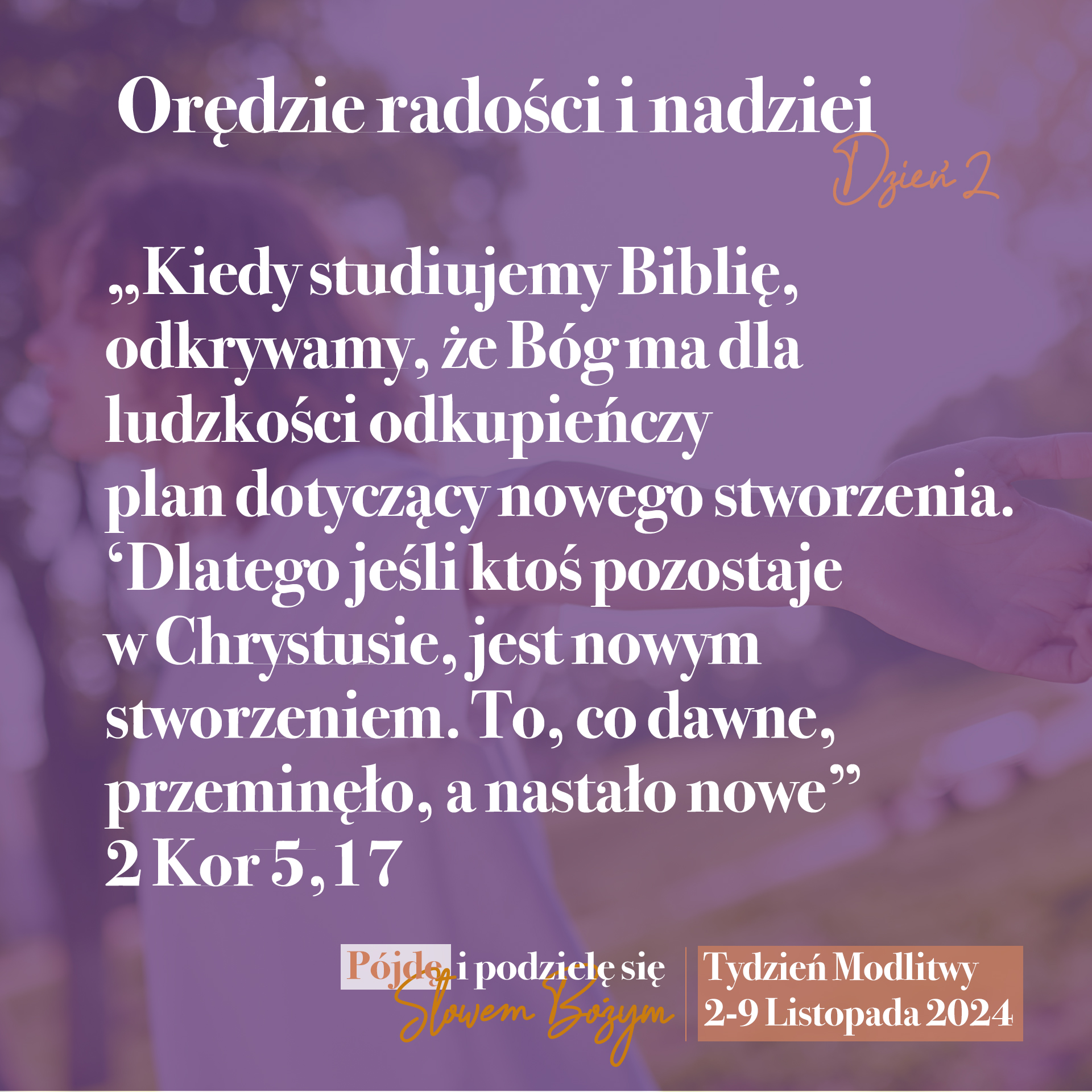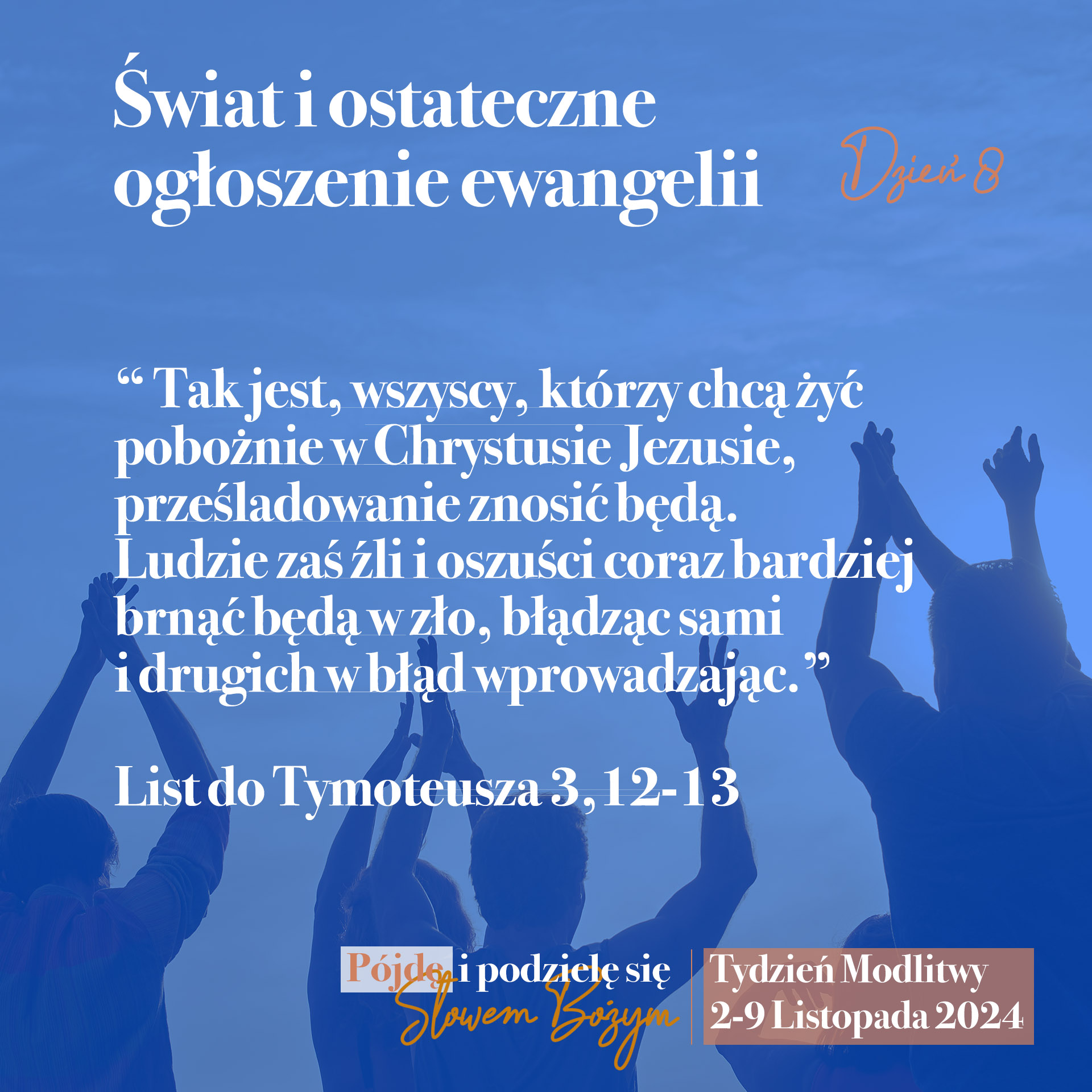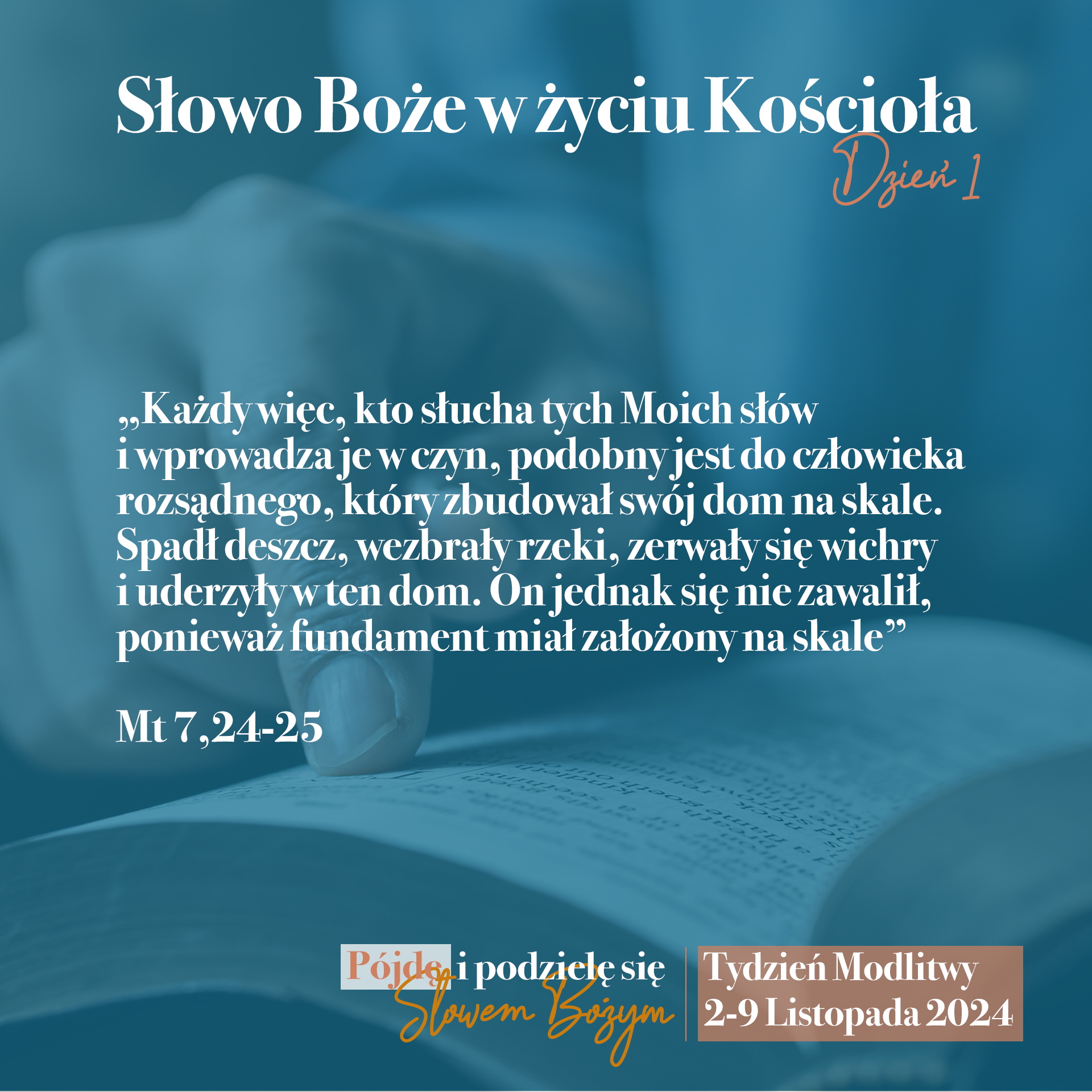 serdecznie zapraszam do udziału w tegorocznym Tygodniu Modlitwy, który odbędzie się w dniach 2–9 listopada 2024 roku. Hasłem przewodnim będzie: „Pójdę i podzielę się Słowem Bożym”.