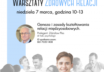 Temat: Geneza i zasady kształtowania relacji międzyosobowych. niedziela 7 marca, godzina 10-13 Prelegent: Zdzisław Ples dr hab. psychologii ID spotkania zoom: 861 7020 1408