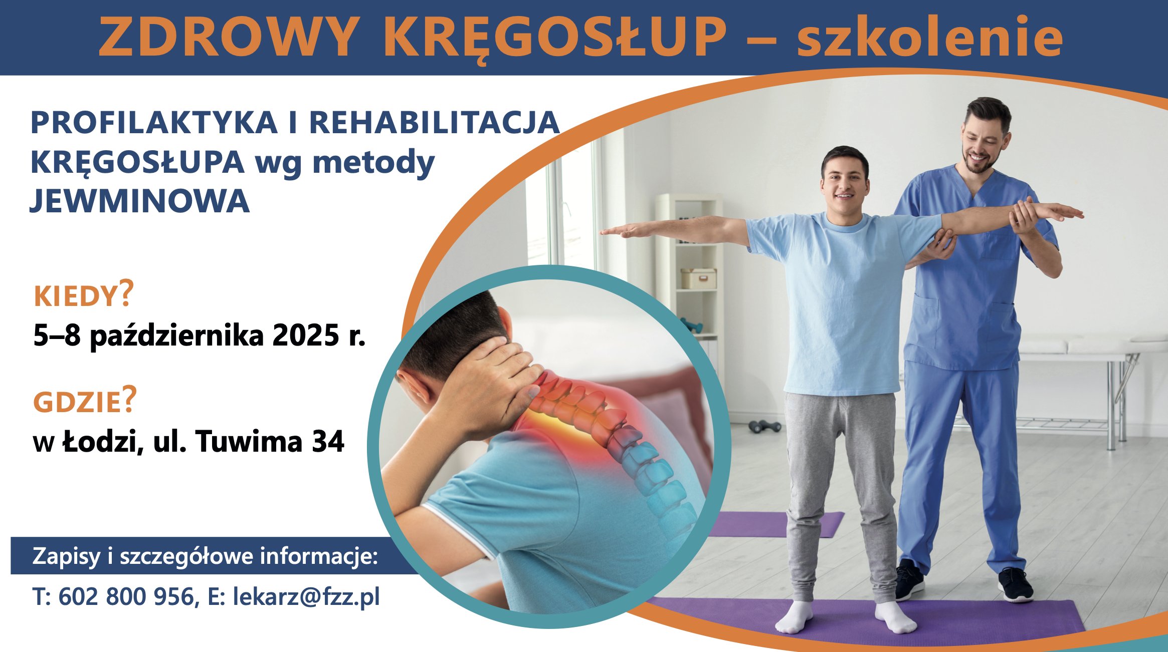 Z radością zapraszamy Was do udziału w wyjątkowym szkoleniu pt. „Zdrowy kręgosłup – profilaktyka i rehabilitacja według metody Jewminowa”, które odbędzie się w dniach 5–8 pażdziernika 2025 r. w Łodzi, przy ul. Tuwima 34.